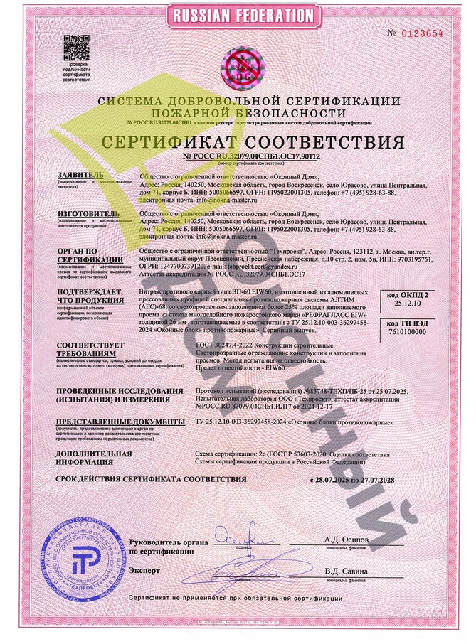 Противопожарные окна и остекление с пределом горения 60 минут.